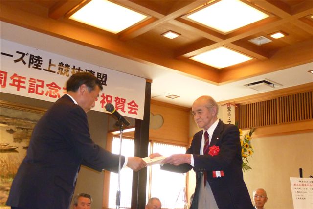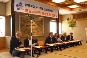 平成24年5月19日(土)に群馬マスターズ陸上競技連盟創立30周年記念式典・祝賀会が登利平本店(前橋市六供町)にて盛大に行われました。当日は73名の群馬マスターズの関係者の方々や来賓の方々にご出席頂きました。祝賀会でのひとコマを掲載します。